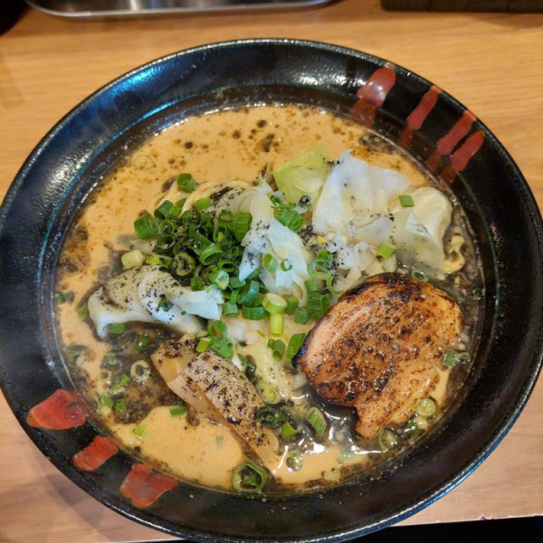 東京都品川区東大井5-3-13マップで見るワンタン麺にトピで追いしょうがの動物出汁に背脂が浮いたスープはしっかり煎った煮干の香りが堪らない。麺は加水やや低目の中細ウェブ卵麺で強い歯応え。替え玉1回。追い生姜の味変も味染み雲呑のフワフワも旨し。
