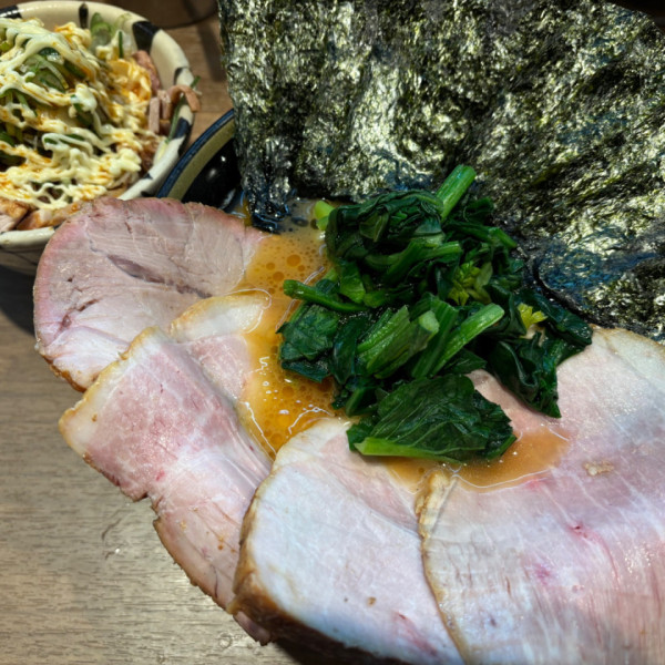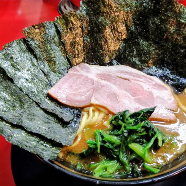 横濱家系ラーメンの総本山「吉村家」直系のお店。豚骨醤油に鶏油、王道の横濱家系のラーメン。