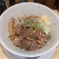 少しして写真の一杯が提供されました。デフォで胡椒がかかっておりました。まずは全体を攪拌。麺を引き出すと極... 続きを見る
