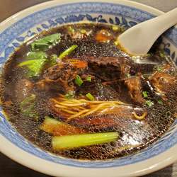 「牛肉麺・+半チャーハンセット」@上海味道の写真【要約】上海ブラックと名付けたくなる、大陸系中華では珍しいタイプの醤油スープを楽しめる一杯。