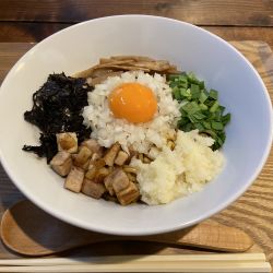 店内は喫茶店と兼用しているようです。とても上品なまぜそば。女性が作っているからかもしれません。魚介系醤油タレ、混ぜられているので、味にムラがない。麺は、中細ストレート麺。とても美味しかったです。