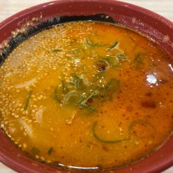 | メニュー | ★醤油(濃厚とんこつスープにストレート太麺、具にキャベツ・もやし・チャーシュー1枚) |