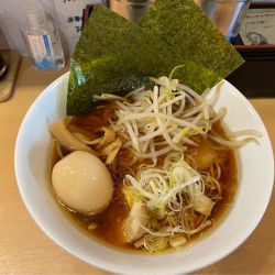 8時40分に訪問、オーダーしました。「半ライスか中盛無料」だったのですが、どちらもいらない、と伝えると「じゃあトッピング一品サービスしましょう」と嬉しいお申し出が。煮玉子をお願いしました。