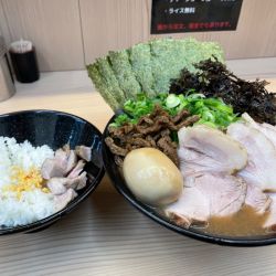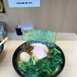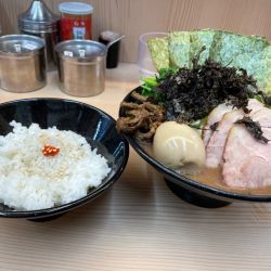初訪。スープは骨のザラつきやや感じる濃厚クリーミー系。味も濃くなく自分にはピッタリ。麺は固めでも他店の普通程度。野菜は超上質でびっくり。コマチャーが非常に良く、それだけ増しにしたいくらい。