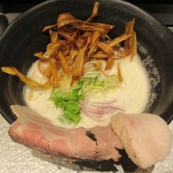 まろやかフワフワ鶏白湯。見た目と違って熱々。