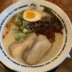 ちょうど宿泊している場所が水前寺公園の近くだったので、これは味千ラーメンの本店に行かなければと思い家族で向かう。