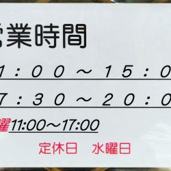 | 営業時間 | 11:00~15:00/17:30~20:00 [日] 11:00~17:00 |