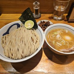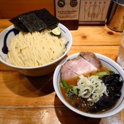 濃厚な魚介豚骨のつけ汁に、ツルツルと喉越しの良い太麺が良く絡んで旨いです。すだち、黒七味で味変が可能なため、飽きずに最後までいただくことができます。