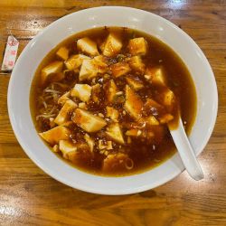 具は、ネギ・麻婆豆腐。挽肉は少量だが、豆腐は絹ごしが一丁くらい入っていそう。