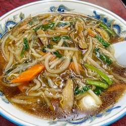 スープは、強烈なとろみ。味付けも濃いめで、個性的なバランス。とろみが強い為か、最後まで熱々です。