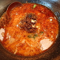 スープは、辛味はマイルドで、まろやかな口たり。奥行きがあり、複雑な味わい。