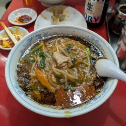 | 備考 | 昭和31年創業の下町の老舗。 開店前から行列ができていることが多い。 なお、従来の「揚げネギ多め」、「もやし多め」といった注文は、「本来の味付けを維持できなくなる」との理由で、中止になりました。 |