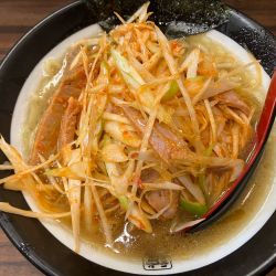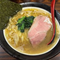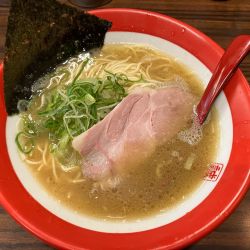 スープは、ややとろみのある濃厚豚骨醤油系。
