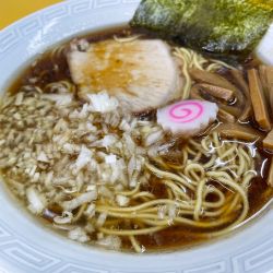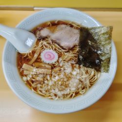 乾物系もダシに使われているのでしょうか。あっさりめのスープですが、ダシの旨みもあり、旨いです。表面の脂や刻みタマネギでコクも加わっている感じがします。