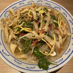 豆乳ベースの担担スープ。全体に酸味があり、スープというよりはゴマ系の冷やし中華のタレに近いニュアンスです。平皿での盛り付け的にもそういう趣向かな?と感じます。なので「ス... 続きを見る