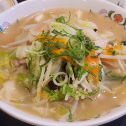 スープは、少々背脂はうくものの、すっきりじんわり系。自分にはやや大人しいので、卓上のブラックペッパーを投入。
