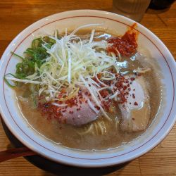 いつもより少し長めに待って出てきたのが写真の一杯。まずはスープから。豚骨の獣の香りがガツンとやってきます。そこに味噌の香りがしっかりと入ってきて美味しい。ベースは豚骨なんだな、と思ってこの濃いスープに舌鼓を打ちます... 続きを見る