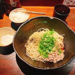 | メニュー | メニューの写真を見る ・汁なし担担麺 1~4辛 各580円 (おすすめの基本の味は2辛) |