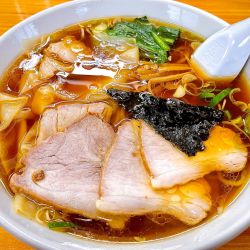 この店舗はとら系の白河ラーメンのお店ですが、白河ラーメンの特長である平打ち縮れ麺ではなく自家製ストレート麺です。