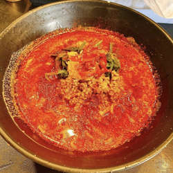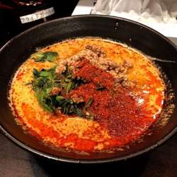 | 備考 | 「麺好ブログ」によると店主は地獄の担担麺 天竜 本店出身。 素スープは濁りのある鶏ガラベース。 平打ち太麺の製麺所非公開(ただし都内の製麺所ではない)。 担々麺の辛味の源は主に唐辛子、そしてラー油。 店オススメではなく、あくまでも店主お好みのメニューは マー油を使った「黒の阿修羅」と具材が被らない「温玉おじやご飯」 の組み合わせだとか。 (以上は取材より) 2024.4.20をもって閉業との告知あり(4/15から延長 移転の計画あり) |