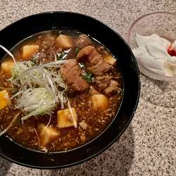 | メニュー | メニューの写真を見る ブラックペッパーポーク麺(とんこつ醤油) 1,200円 |