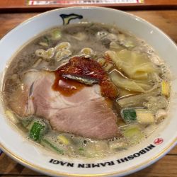 具材:チャーシュー、にぼし、ネギ、いったんもめん、辛銀ダレ、煮干粉