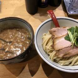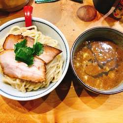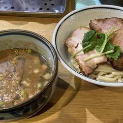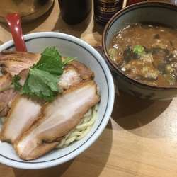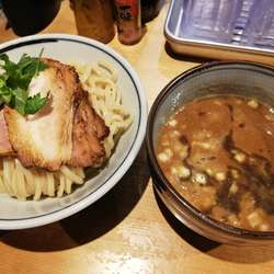 カネジン食品製の麺はムチっとした粘りと弾力があるもので濃厚なつけ汁との噛み合いも良好、ドカっと乗ったチャーシューも大きく厚く食べ応えがあって悪くない。